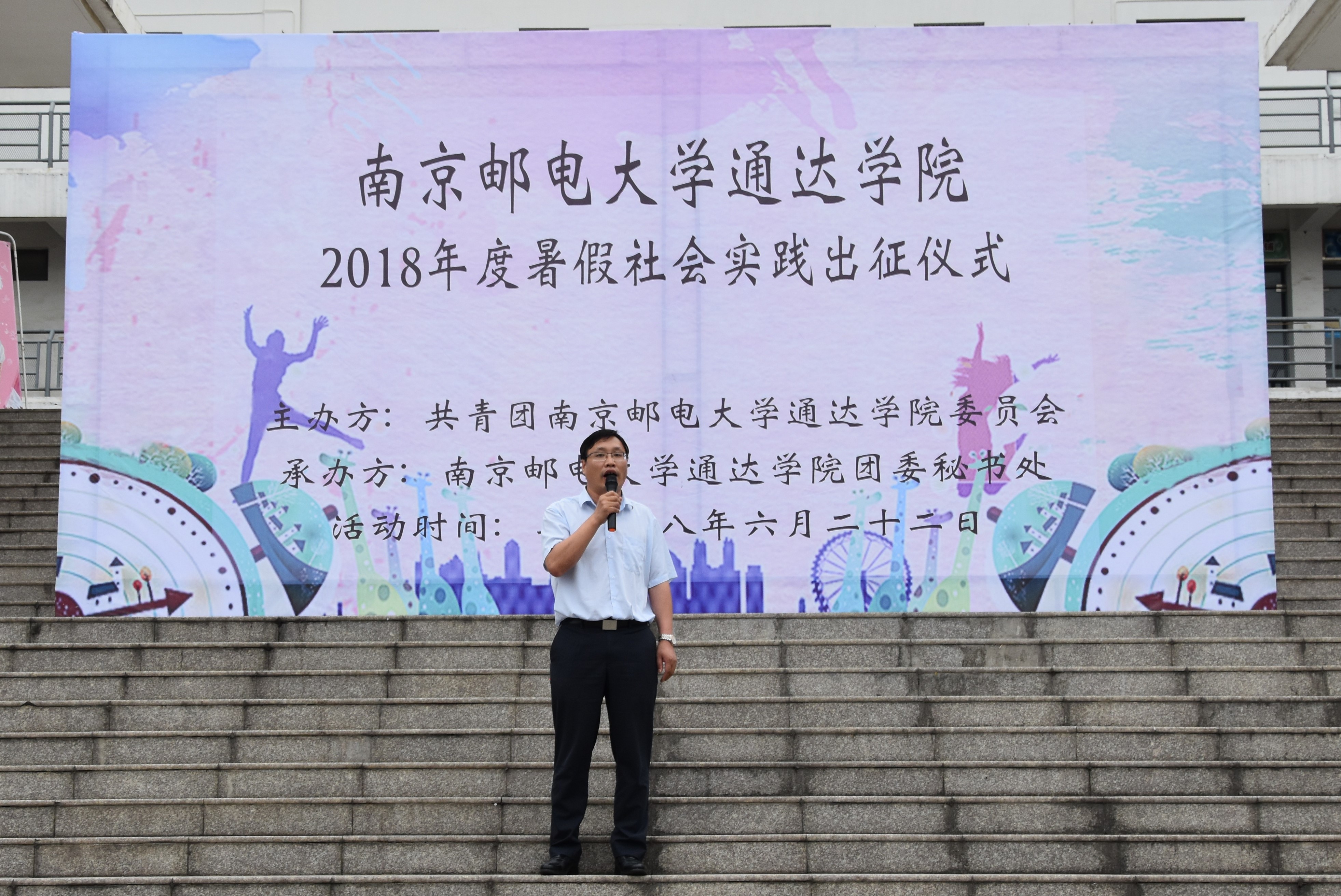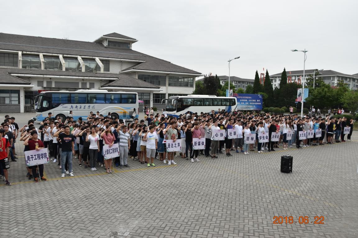 6月22日下午,威尼斯官网2018年暑期社会实践出征仪式在后勤楼广场举行。学院党委副书记王立辉、团委书记解厚荣、团委副书记姚远、各二级学院分团委书记以及28个社会实践团队共500余人参加了此次活动。