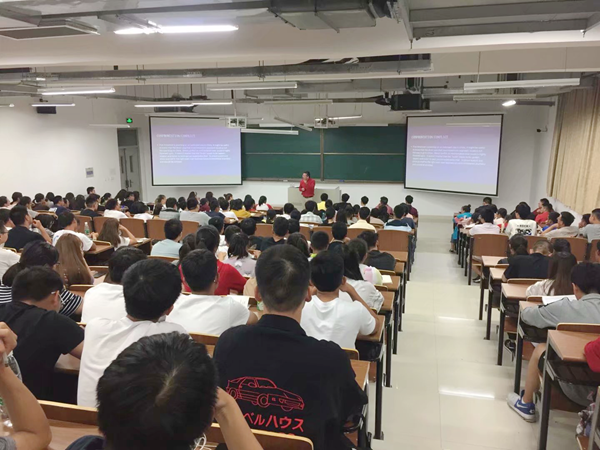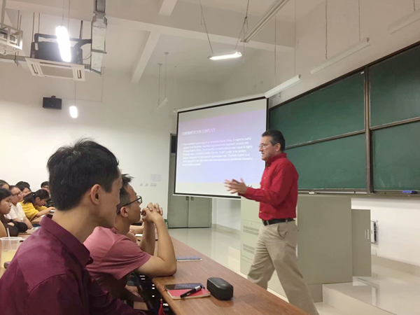 Dunham先生围绕跨社会阶层间的交流、交流启动与维系方式、自我价值判断、面子、商业关系的建构方式、道德认同、对逝者的尊重、谦卑与虚夸、尊重长辈等10个方面,宏观分析了中西文化的差异,并以自己在跨文化交际中所遇到的问题和体验加以说明,强调文化没有优劣之分,我们应在尊重对方文化背景的基础上,学会认识、包容和适应文化差异,避免跨文化交际中的失误和误解,才能适应全球化的需求。讲座吸引了200多名师生自愿参加。