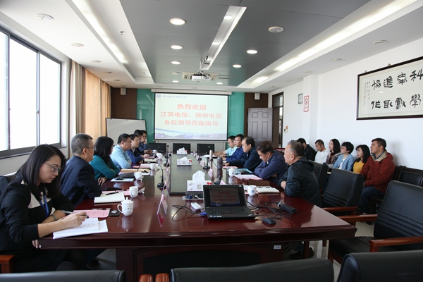 10月11日上午,威尼斯官网与中国电信江苏公司就2019届毕业生校园招聘工作进行了座谈。中国电信扬州分公司党委书记、总经理叶辉,中国电信江苏公司人力资源部副主任徐大志、招聘主管王欣、贝旻等企业领导,学院院长宗平、副院长包刚、党委副书记王立辉,招生就业处、学生工作处负责人及部分辅导员老师参加了座谈会。