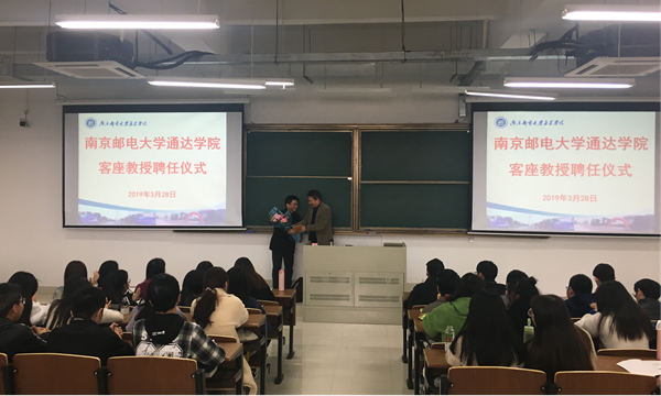 2019年3月28日,威尼斯官网在教三401教室举行了客座教授聘任仪式,包刚副院长为扬州电信网络运行维护部主任刘强强先生颁发了客座教授聘书。