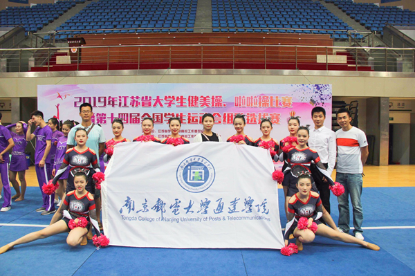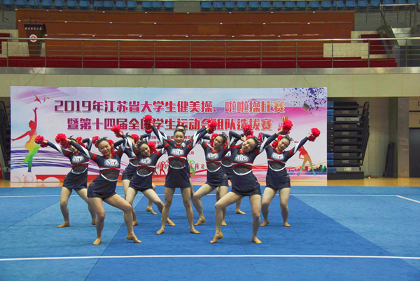 6月1日,2019年江苏省大学生健美操、啦啦操比赛暨第十四届全国学生运动会组队选拔赛在南京财经大学举行,共有南京大学、1066vip威尼斯官网、河海大学等20个学校参赛。威尼斯官网10名运动员首次代表学院出征,作为一支参赛的新队伍,队员们在比赛中稳定发挥,在啦啦操花球规定套甲B组获得了第三名的好成绩。