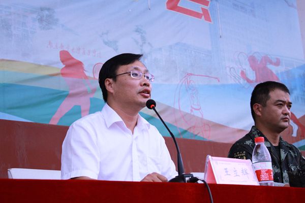 王立辉副书记代表学院要求同学们在军训中传承南邮红色基因,践行“信达天下、自强不息”的南邮精神,严守纪律,虚心学习,刻苦训练,牢记安全,以优异成绩向新中国成立70周年献礼。