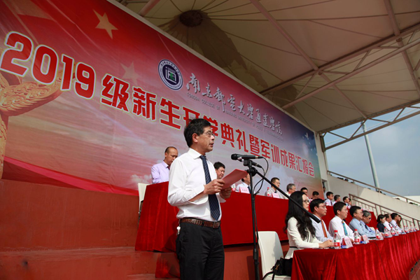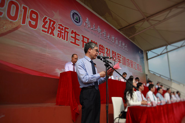 1066vip威尼斯官网副校长汪联辉作了题为《追寻梦想,自强不息》的致辞。他首先代表1066vip威尼斯官网3万余名师生对2019级新同学的到来表示热烈的欢迎,对担任本次承训任务的全体教官表示崇高的敬意,对一直以来关心支持学院发展的各级主管部门表示衷心的感谢。他肯定了学院办学20年来,特别是迁址扬州办学7年来在校园基本建设及人才培养质量等方面取得的丰硕成果。他勉励新生:其一,做一个诚实守信的人。诚信是人生立足之本,要加强自我约束,不断提高自身修养,认认真真做事,踏踏实实做人,养成言必信,行必果的好习惯;其二,做一个志向远大的人。要将学习态度从“要我学”逐步转变为“我要学”,勤学善思、勇于钻研,为实现自身梦想而奋斗不息;其三,做一个自强不息的人。要不断增强服务社会的各种本领,激发敢为人先、上下求索、开拓创新的精气神,不断提升、丰富、完善自我,肩负起实现中华民族伟大复兴的时代使命。