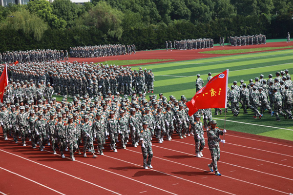 历经2周的涅槃蜕变,2019级新生终于迎来了成果检验的时刻。学院院长王承宽检阅了军训方队。2400余名新生列着整齐的队伍,在教官的带领下,以嘹亮的口号、严密的纪律、过硬的素质接受学院领导的检阅。伴随着雄伟的乐曲,4个营25个军训方队依次经过主席台前,步伐坚定、队形整齐、气宇轩昂,彰显着属于他们千禧年的青年人的青春与朝气。受训新生进行了手语倒计时,将爱国爱校教育融入军训之中,受训学生展示了“2019”“中国”“70”“南邮”“通达”等阵行,千人合唱《我和我的祖国》,猎狐行动——无线电测向,《中国梦,起航!》海军旗语,《中华尚武》拳术汇报表演,受训教官也展示了格斗搏击。整齐划一的手语操表演,刚劲有力的踢脚勾拳,娴熟连贯的军体动作,变换万千的花样队列,男生尽显铮铮铁骨,女生尽展英姿飒爽,博得与会人员的高度赞许。