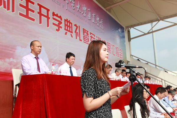 开学典礼在高亢嘹亮的国歌声中拉开帷幕。