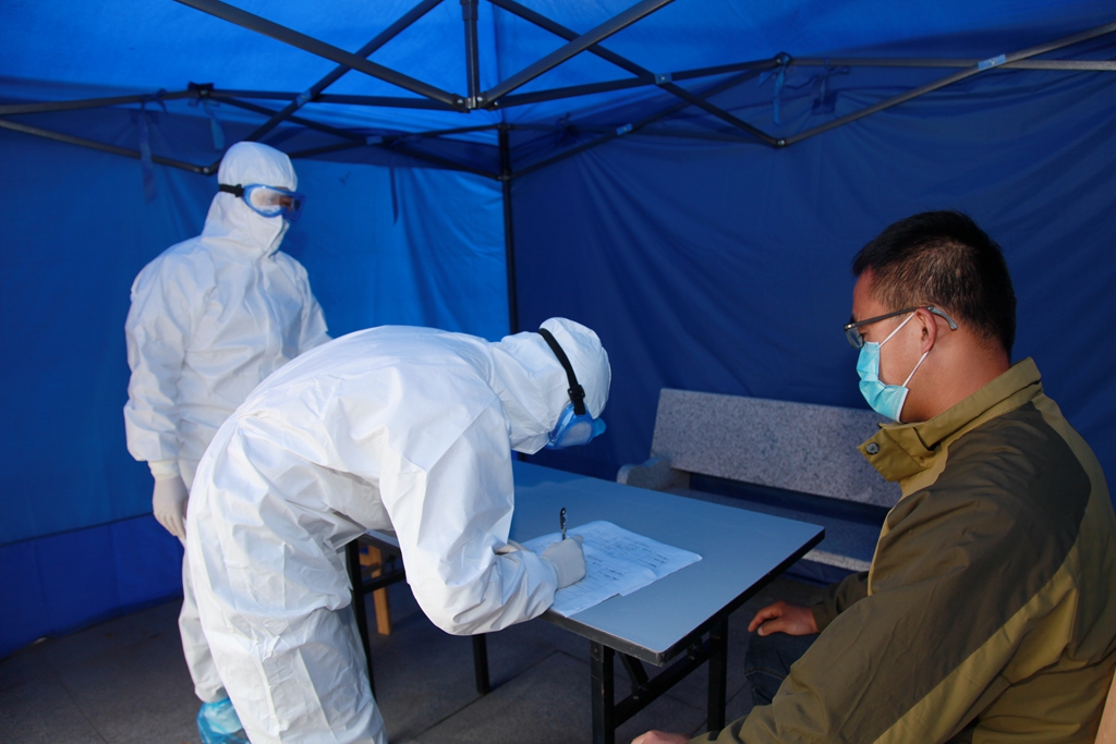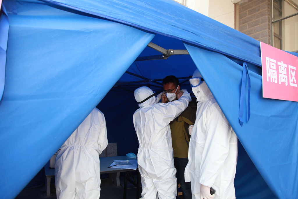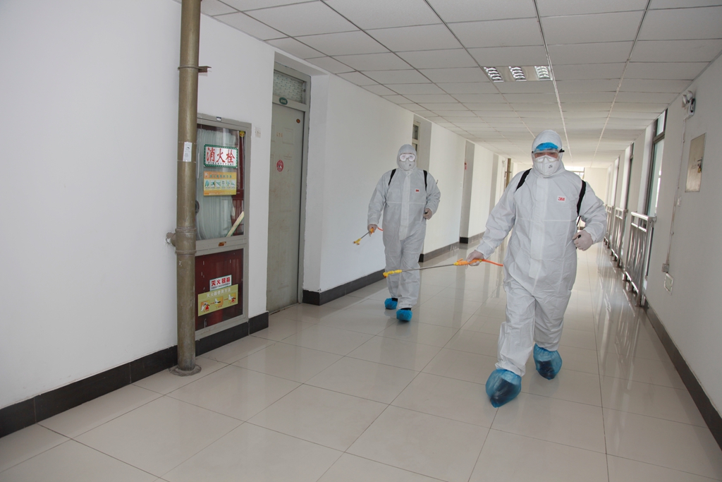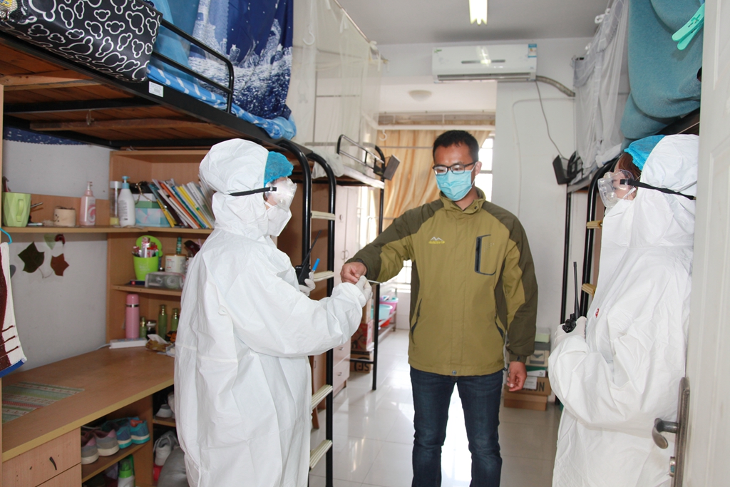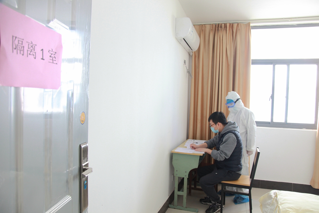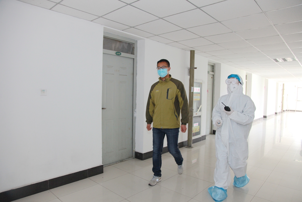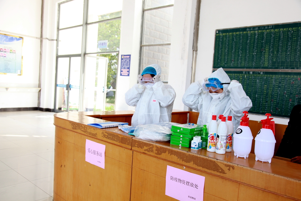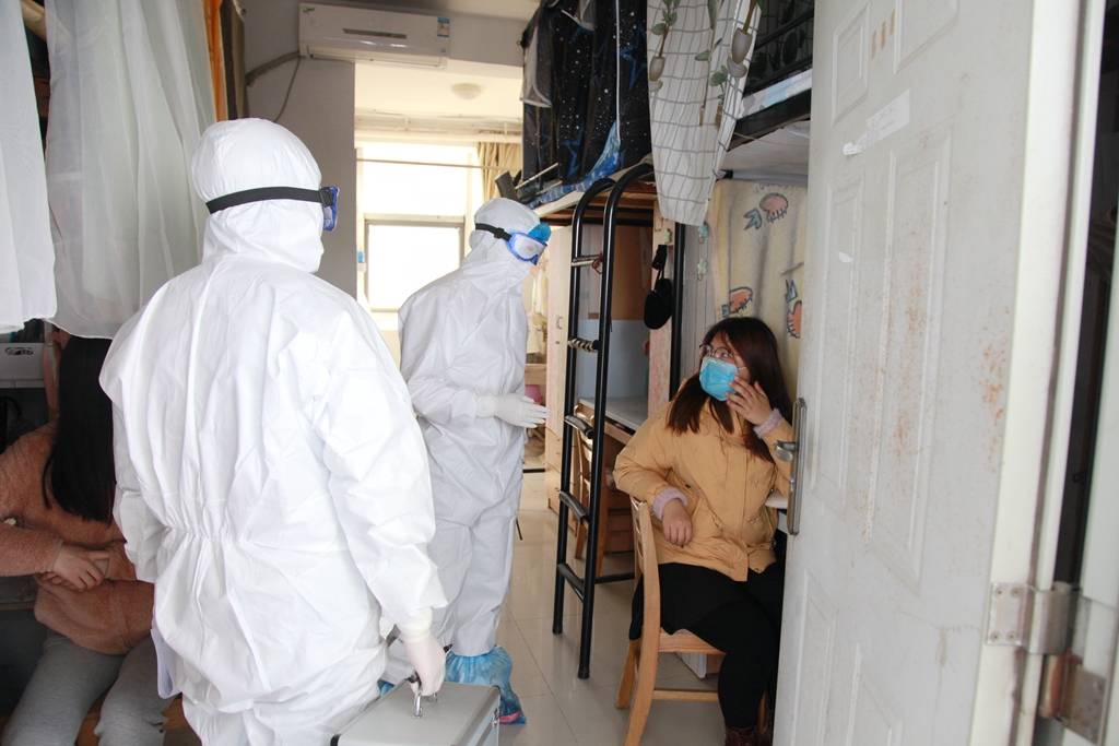 宿管人员接到电话后,穿防护服,戴乳胶手套、护目镜赶往宿舍