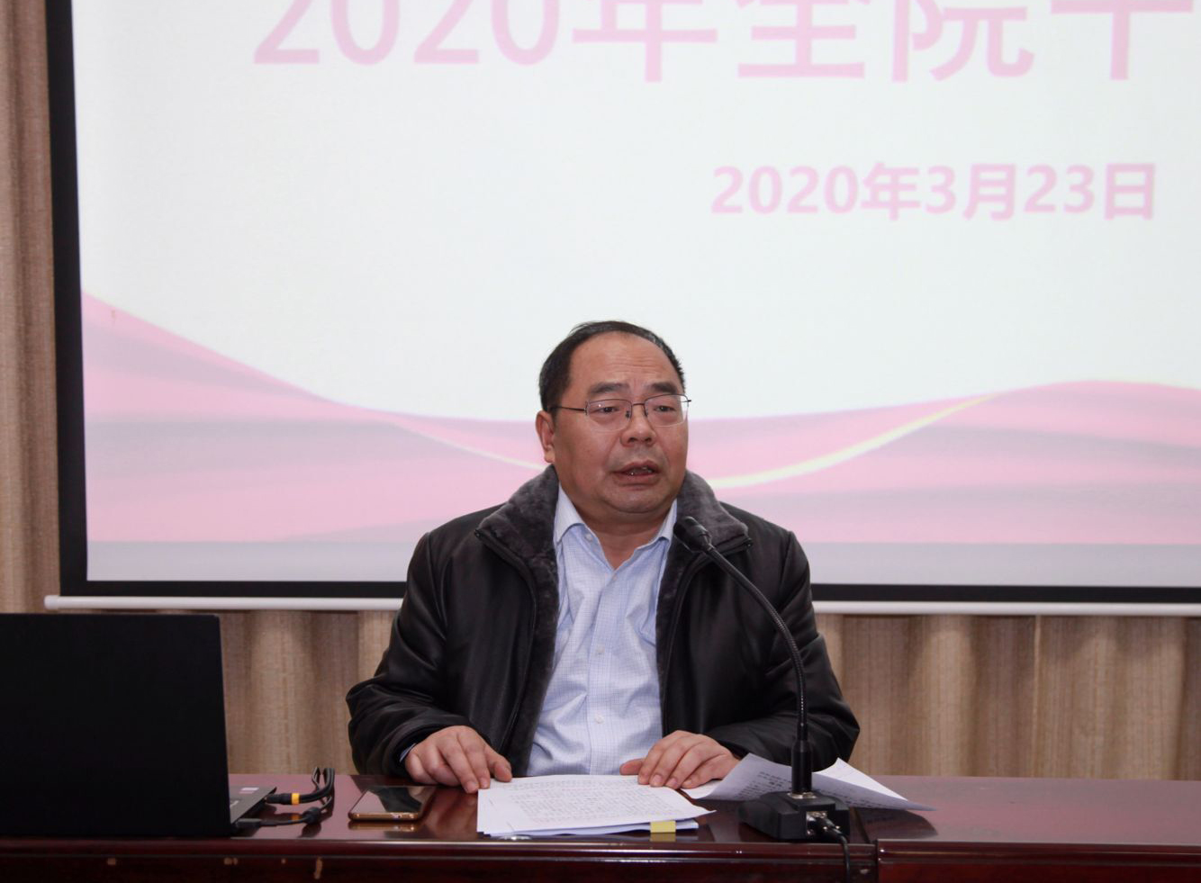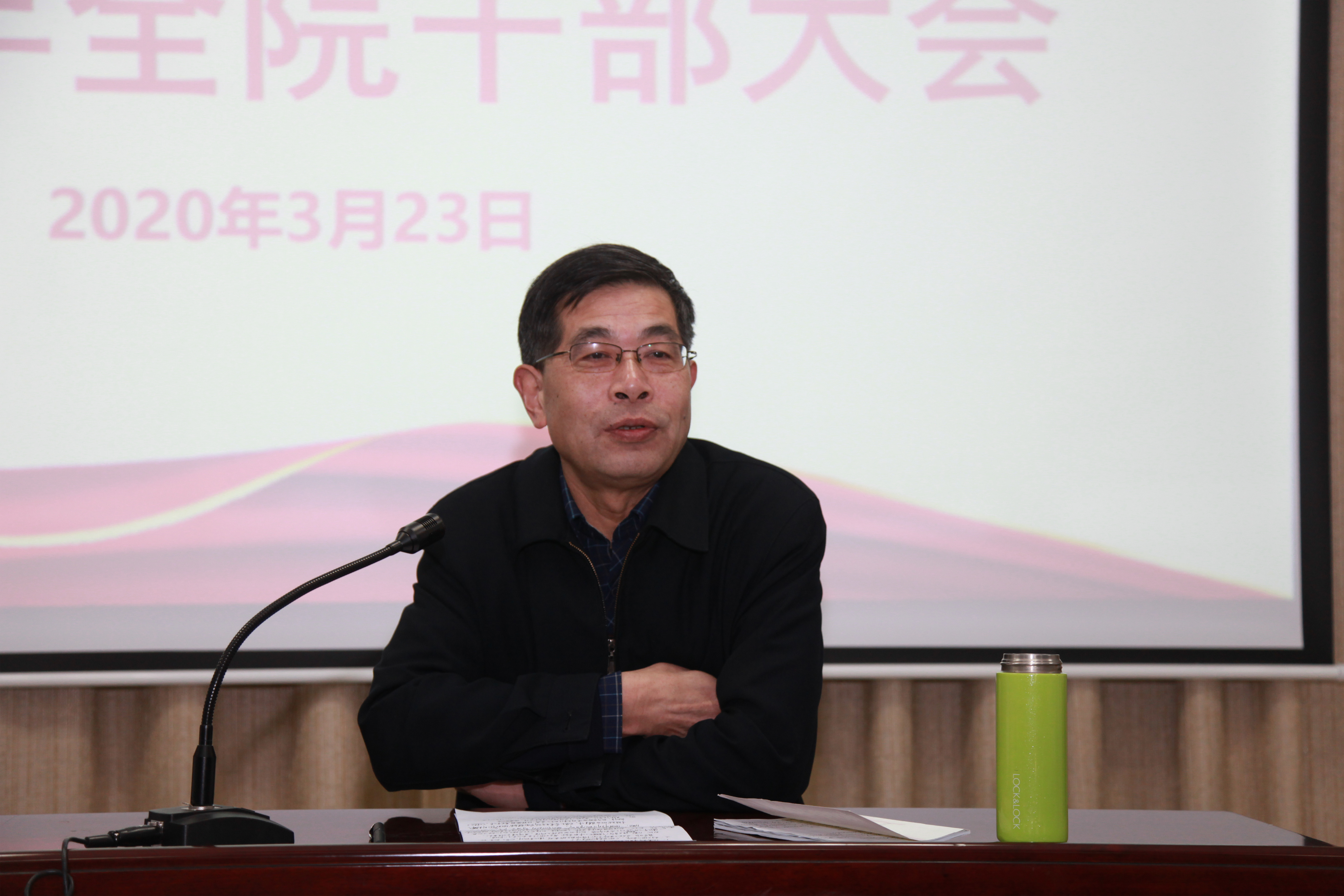 3月23日下午,学院在大学生活动中心一楼会议室召开2020年全体干部会议。全体院领导、部门负责人参加了会议。会议由党委书记汪业周主持。