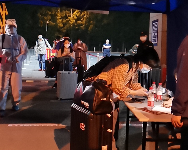 全天候不间断志愿服务——由150余名领导老师共同组建教职工志愿者团队,他们坚守岗位,为返校报到学生提供全天候24小时不间断的交通引导、行李搬运、体温检测、健康码和返校证明查验等服务。