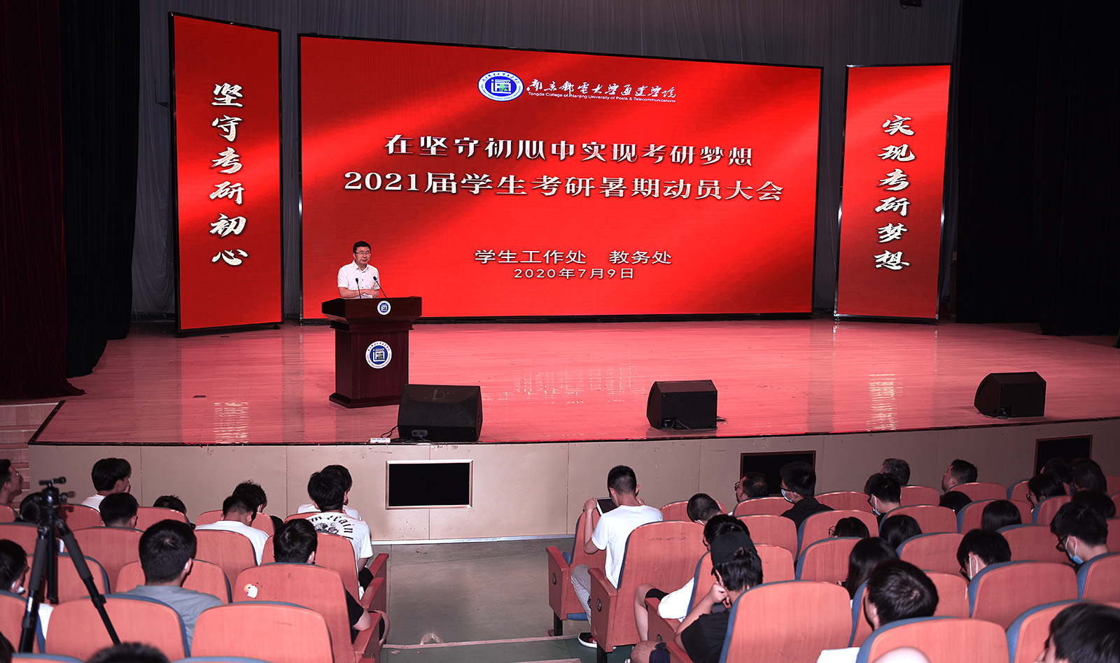 学院党委副书记兼副院长王楷作了《在坚守初心中实现考研梦想》的动员讲话。他给同学们分享了学院2020届的考研佳绩,结合威尼斯官网考研学生的典型案例和自己大学时期的学习经历,从坚守初心、坚定信心、坚持恒心三个方面鼓励同学们在考研的路上勇往直前,砥砺奋进,极大地鼓舞了同学们的士气。他希望考研学生能充分利用好这个暑期时间,执行考研计划,学会团队作战,充分利用好学校提供的资源,强化提升,收获战果。