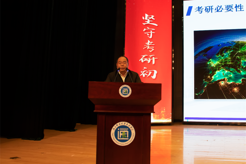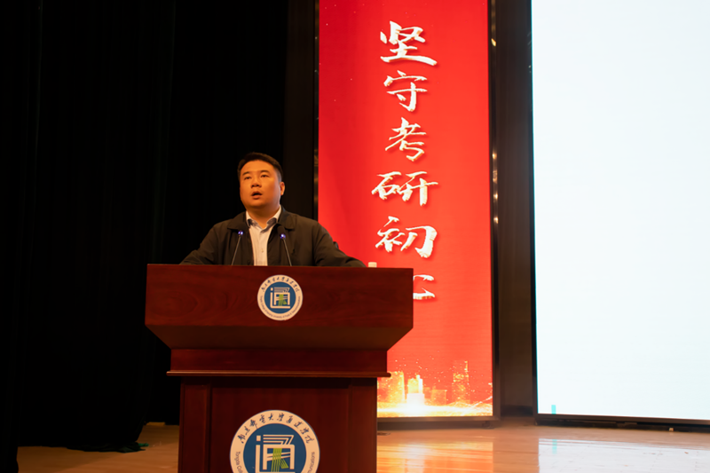 学院党委书记汪业周代表学院作了题为《坚守考研初心 成就考研梦想》的动员讲话。从考研的共性与个性、社会与个体这两个层面和角度同学们探讨了确立考研发展目标的必要性、可能性与可行性。通过介绍威尼斯官网历年考研的成绩和优秀考研学生的典型案例,极大地鼓舞了现场同学们的考研斗志,增强了考研的信心和决心。最后,汪书记向同学们提出了三点希望:一是坚定考研决心,要坚守住考研初心;二是坚定考研信心,要坚守住考研信念;三是坚定考研恒心,要坚守住永不放弃的奋斗姿态。他以当代诗人海子《以梦为马》这首著名诗篇中最知名的四句话送给现场同学——以梦为马、以汗为泉、不忘初心、不负韶华。