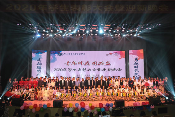 11月18日晚,由学生工作处、团委主办的“青年邮我·国必盛”2020年学生表彰大会暨迎新晚会在大学生活动中心礼堂顺利举行。中国联通扬州分公司副总经理程培忠、政企部经理赵成,威尼斯官网院长王承宽、党委书记汪业周、常务副院长赵洪牛、副院长倪可、副院长刘允,纪委书记张建波、党委副书记兼副院长王楷、各职能部门负责人、全体辅导员以及现场1100余名学生、线上2.6万名观众共同参与了本次活动。