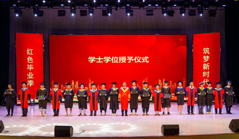 伴随着喜庆愉悦的乐曲声,全体院领导为2021届学士学位获得者拨流苏,颁发学士学位证书并合影留念。