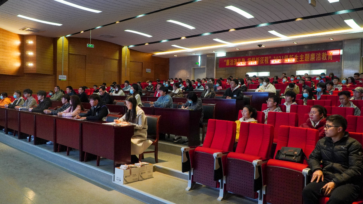 专题讲座释“廉洁要义”。11月8日,学院召开“廉洁清风劲 扬帆新征程”2021级新生主题廉洁教育动员部署会暨专题讲座,观看教育视频、部署活动安排、赠送廉洁读本、进行廉洁宣誓。院纪委书记张建波作了题为《弘扬廉洁风尚 建强立身之基》的专题讲座,围绕“重温正风肃纪反腐的六个第一”“十八大以来的中国廉政实践”“大学生廉洁教育的思考及启示”三个方面展开,重点讲述了大学生不廉洁修身的表现,并希望新生注重涵养清正廉洁品质,始终守住廉洁底线。