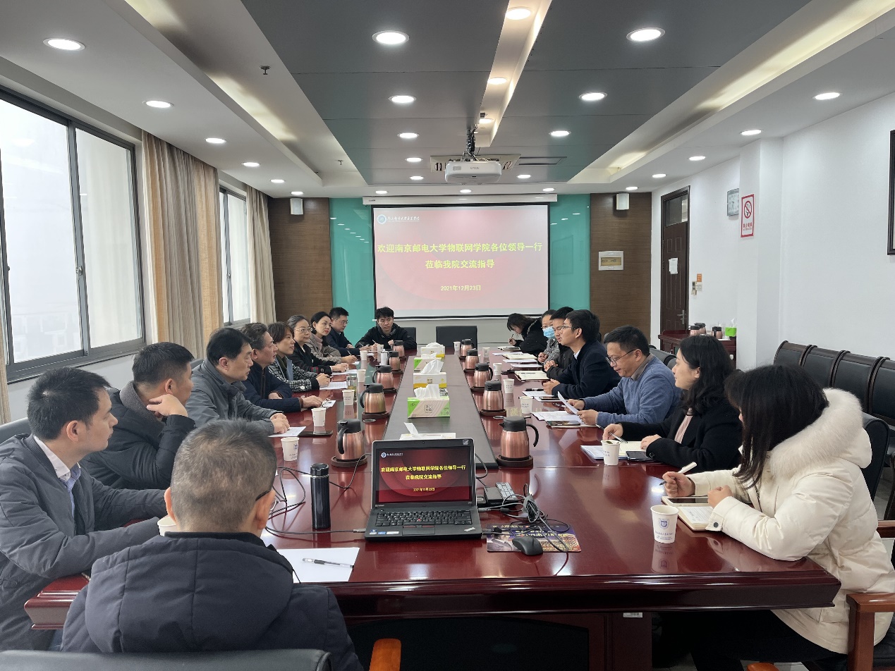 刘允副院长代表学院对物联网学院一行的到来表示热烈欢迎,并就学院办学规模、组织结构、专业建设、人才培养、校园建设等做了详细介绍,并希望双方在今后资源共享、加强合作方面有进一步突破。张登银院长就双方在学生升学、高质量发展、专业建设等方面提出了自己的意见和建议。双方表示今后要进一步加强交流,合作共享,推动高质量发展。