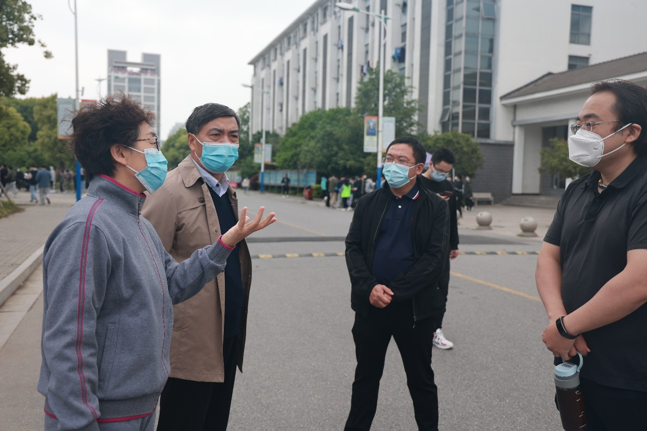 上午,院长王国平、党委书记朱清等院领导先后来到篮球场、教学楼、体育馆等临时采样点走访了解检测情况。在体育馆采样点,院长王国平、党委书记朱清与等候检测的师生进行交流,叮嘱大家要认真遵循防疫要求,提高自我防护意识,同时叮嘱相关部门要继续做好服务保障工作。