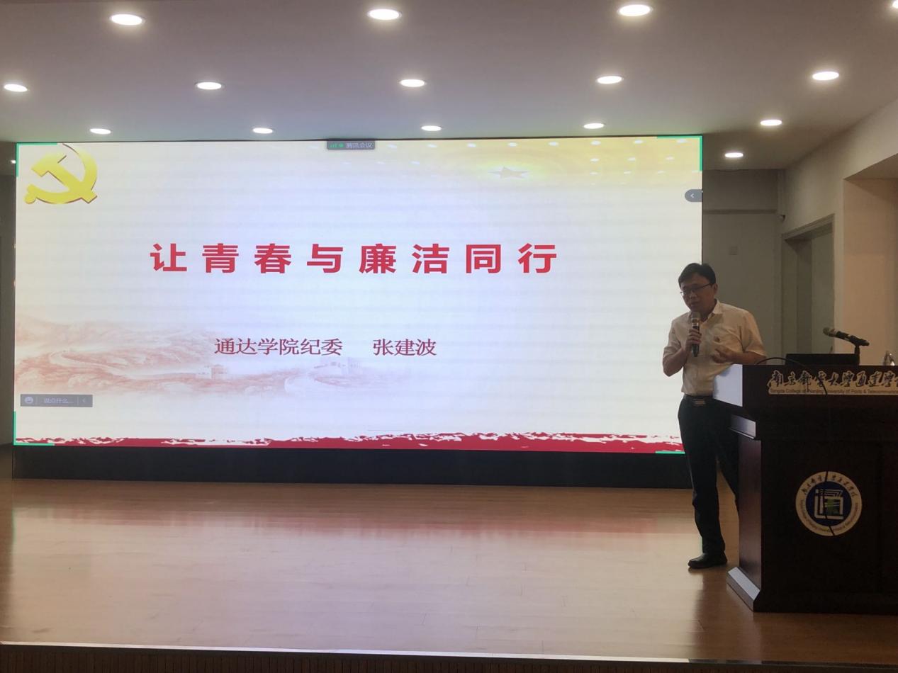 6月9日晚,威尼斯官网在一号实验楼报告厅召开2022届毕业生党员廉洁教育大会。学院纪委书记张建波,纪委办公室、党委工作部负责人,2022届毕业生党员及2022年预备党员培训班学员参加会议,会议以线上线下相结合方式举行。会议由纪委办公室主任卞文献主持。