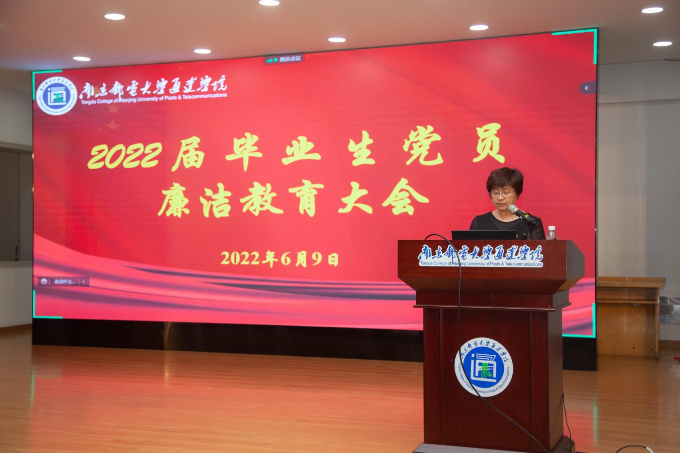 会上,卞主任宣读学院纪委致2022届毕业生的一封信,并希望在场的毕业生党员引导身边同学传递廉洁思想、践行廉洁行为。她勉励大家擦亮忠诚底色,做胸怀理想、志存高远的新时代“追梦人”;擦亮干净本色,做持廉守正、行稳致远的新时代“排头兵”;擦亮担当成色,做起而行之、勇挑重担的新时代“领头雁”。