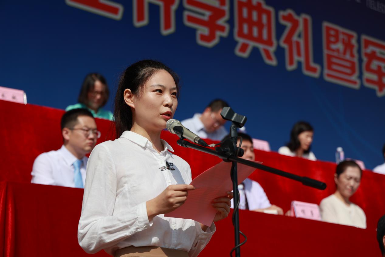 教师代表朱书眉从“惜时”“规划”“拼搏”等三个角度为切入点,希望同学们要怀揣理想,脚踏实地,创造美好明天,并代表全体教师庄严承诺,必将担好“传道授业解惑”的神圣使命。