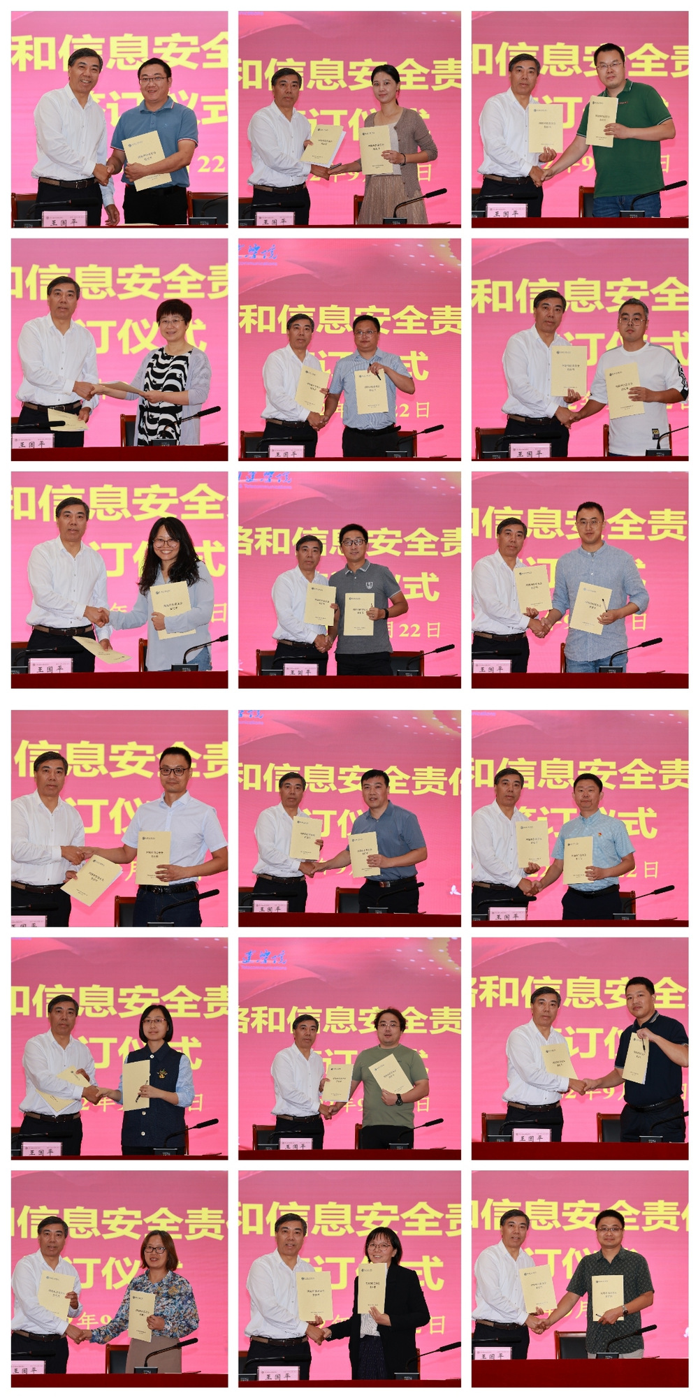 会议明确各部门(单位)主要负责人是本部门(单位)信息系统(网站)安全第一责任人,对本部门(单位)的信息系统(网站)负领导责任。王院长现场同各部门(单位)签订了网络和信息安全责任书。