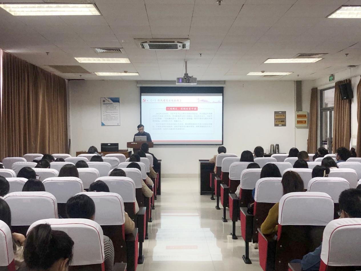 张书记主要围绕“以钉钉子精神纠治‘四风’”“八项规定深刻改变中国”等内容阐述了党的十八大以来深入推进党风廉政建设和反腐败斗争的具体实践,并带领与会人员共同学习《新时代高校教师职业行为十项准则》《普通高等学校辅导员队伍建设规定》等制度文件的主要内容,进一步明确了辅导员工作职责和要求。同时,结合辅导员违规违纪典型案例,分析了辅导员工作中面临的党员发展、评先推优、奖助学金评定、学生干部选拔任用等廉政风险点,教育引导辅导员进一步系好廉洁“安全带”,把好用权“方向盘”。