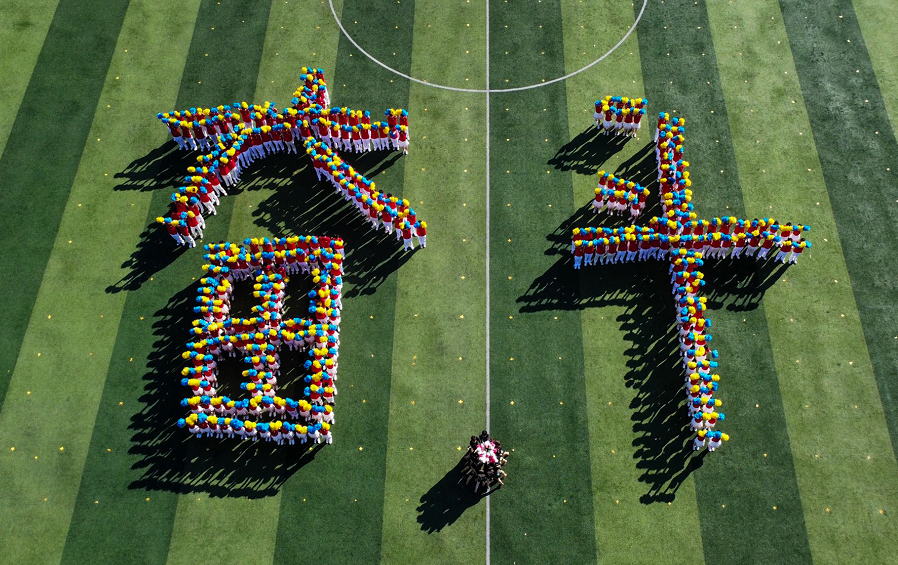 开幕式表演环节,近400名学生代表表演了啦啦操《歌唱祖国》,展现了通达学生积极、健康、向上的精神风貌。