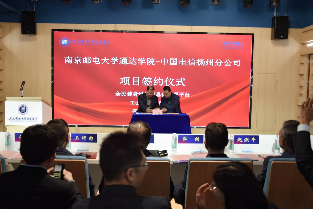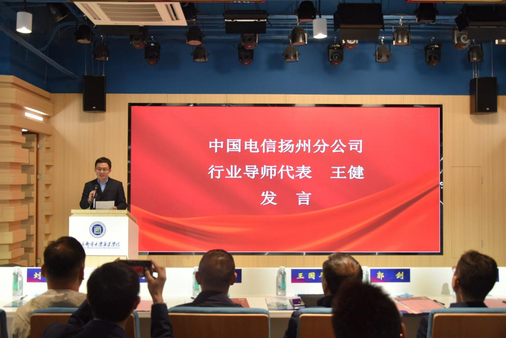 项目签约环节,扬州电信副总经理杜亨亮、计算机工程学院院长余永红作为代表就全民健身设施管理平台等三个研发项目进行签约。随后,扬州电信王健作为行业导师代表发言,他表示扬州电信行业导师团队包含电子信息类、通信工程类等各个领域的专家,希望在进一步培养通达学子专业理论知识水平和实践能力的同时,共同孵化创客项目。计算机工程学院学生吴昌平作为学生代表发言,他号召同学们积极参与创新创业活动,勇于创新,抓住机遇,全面发展。