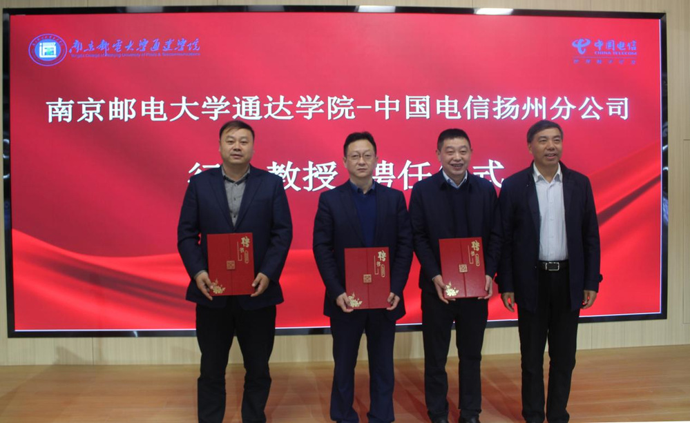 活动伊始,学院院长王国平致欢迎辞,他简要介绍了学院情况,并对近年来取得的双创成绩表示了充分肯定。他强调,创客空间是通达学子实践创新的重要平台,对应用型人才培养具有重要现实意义。扬州电信党委书记、总经理郭剑致辞中表示电信高度重视科技创新、科技自强的高校人才培养战略,将持续加强与学院的交流沟通,共同培养优秀人才。随后,王国平院长和郭剑总经理为扬州电信创客空间揭牌,王国平院长为行业教授颁发聘书,王国平院长和赵洪牛副院长为行业导师颁发聘书。