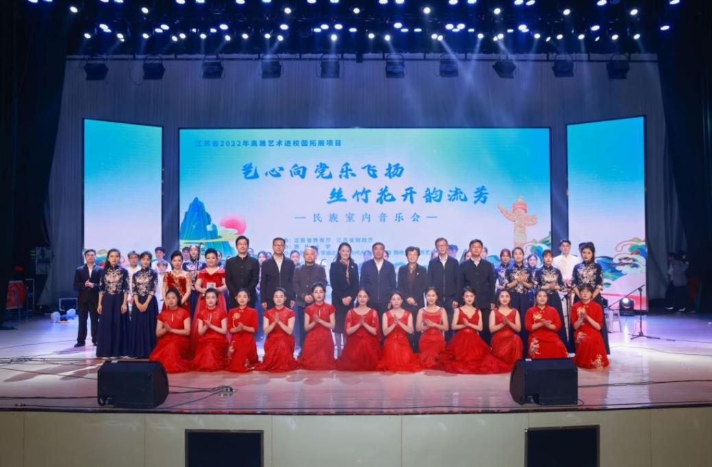 11月9日下午,2022年度高雅艺术进校园活动“艺心向党乐飞扬,丝竹花开韵流芳”民族室内音乐会在威尼斯官网大学生活动中心礼堂举行。扬州大学音乐学院院长邵萍,扬州大学公共艺术教育中心主任、音乐学院副院长姚霆,学院院长王国平,党委书记朱清,副院长刘允,党委副书记兼副院长王楷,团委等相关部门负责人以及千余名学生观众参加本场活动。