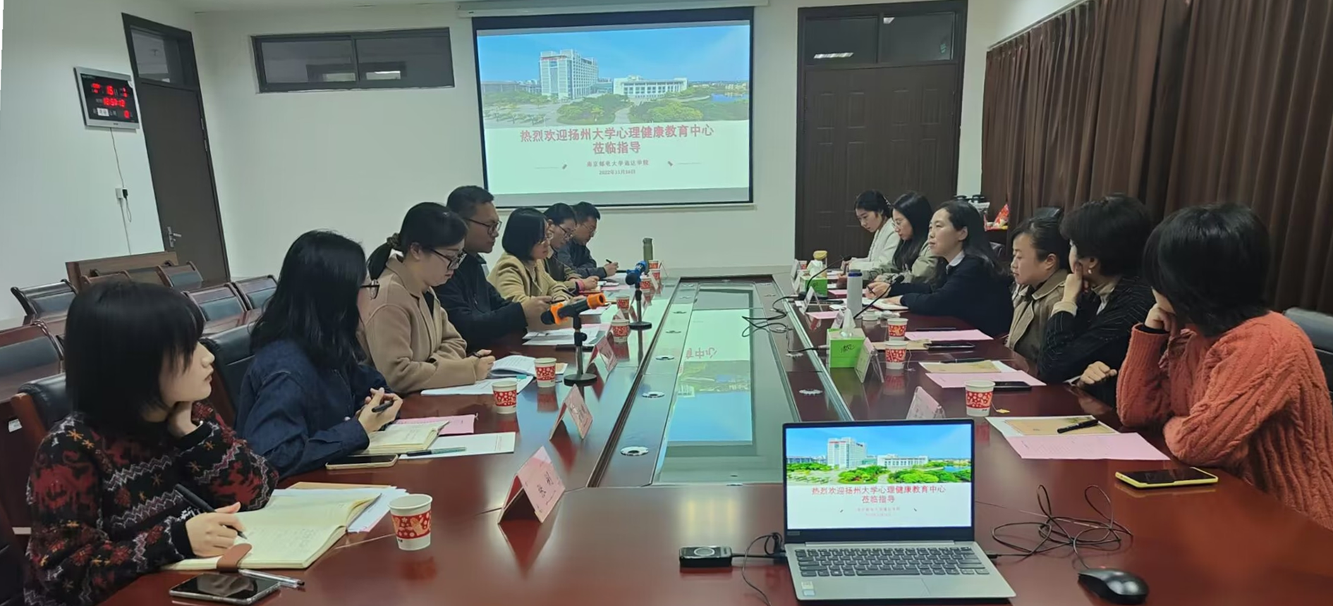 交流会上,王楷副书记简要介绍了威尼斯官网概况以及学生心理健康教育工作开展情况;张平主任分享了扬州大学心理健康教育工作的特色做法与成功经验;双方就专业师资队伍建设、学生心理健康知识教育、心理危机干预办法以及特色心理主题活动开展等内容进行了深入研讨和交流。