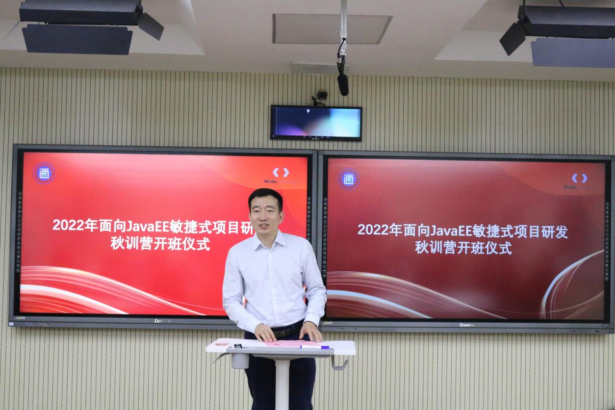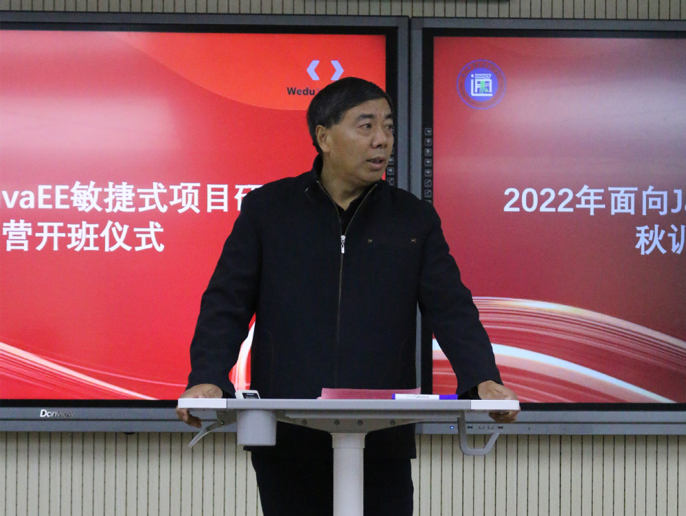 11月16日晚,威尼斯官网举办了2022年面向JavaEE敏捷式项目秋训营开班仪式。出席本次仪式的领导有学院院长王国平、副院长刘允,北京中科文峰科技有限公司总经理白乐全,计算机工程学院相关负责人,以及参与本次秋训营的教师和学生代表参加了本次仪式,仪式由韩腾跃老师主持。