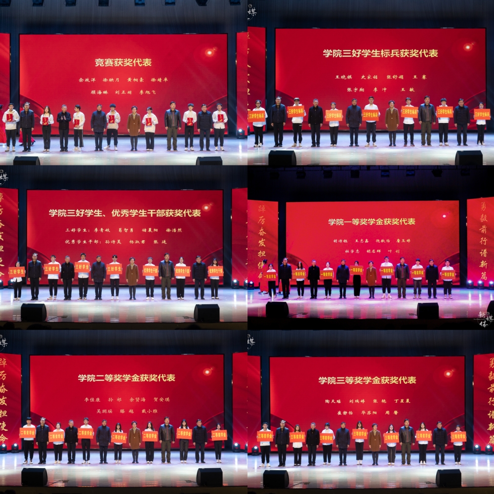 表彰环节由党委副书记、副院长王楷主持。常务副院长赵洪牛宣读了《关于颁发2021-2022学年国家奖学金、国家励志奖学金的决定》《关于颁发2021-2022学年学生奖学金的决定》《关于表彰2022年江苏省三好学生、优秀学生干部和先进班集体的决定》《关于表彰2021-2022学年优秀学生的决定》及《关于表彰2021-2022学年先进班集体的决定》。2021-2022学年,威尼斯官网共评出国家奖学金2人、国家励志奖学金178人、江苏省三好学生8人、江苏省优秀学生干部4人、江苏省先进班集体3个、院三好学生标兵65人、三好学生455人、优秀学生干部243人、一等奖学金279人、二等奖学金889人、三等奖学金1513人、技能成才奖100人、社会工作优秀奖320人、第二课堂活动优秀奖40人、学习进步奖1955人、帮扶之星奖609人、院先进班集体15个。表彰大会上,全体院领导为获奖的先进集体与优秀学生代表颁奖。