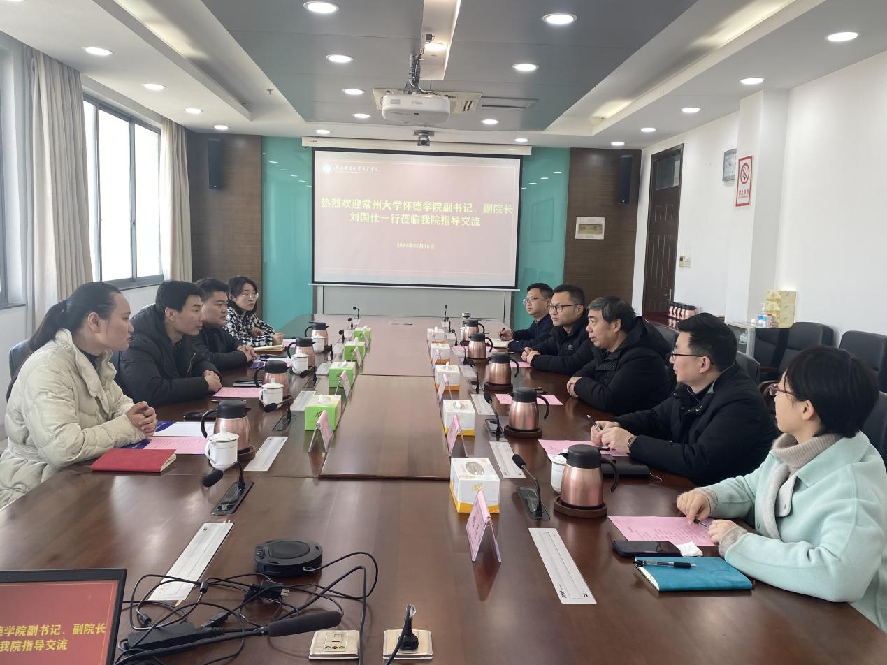 2月16日上午,常州大学怀德学院党委副书记、副院长刘国仕一行4人来威尼斯官网就学生教育管理等工作进行调研交流。威尼斯官网院长王国平,党委副书记、副院长王楷,招就处、教务处、学生工作处等相关部门负责人参加了调研交流会。