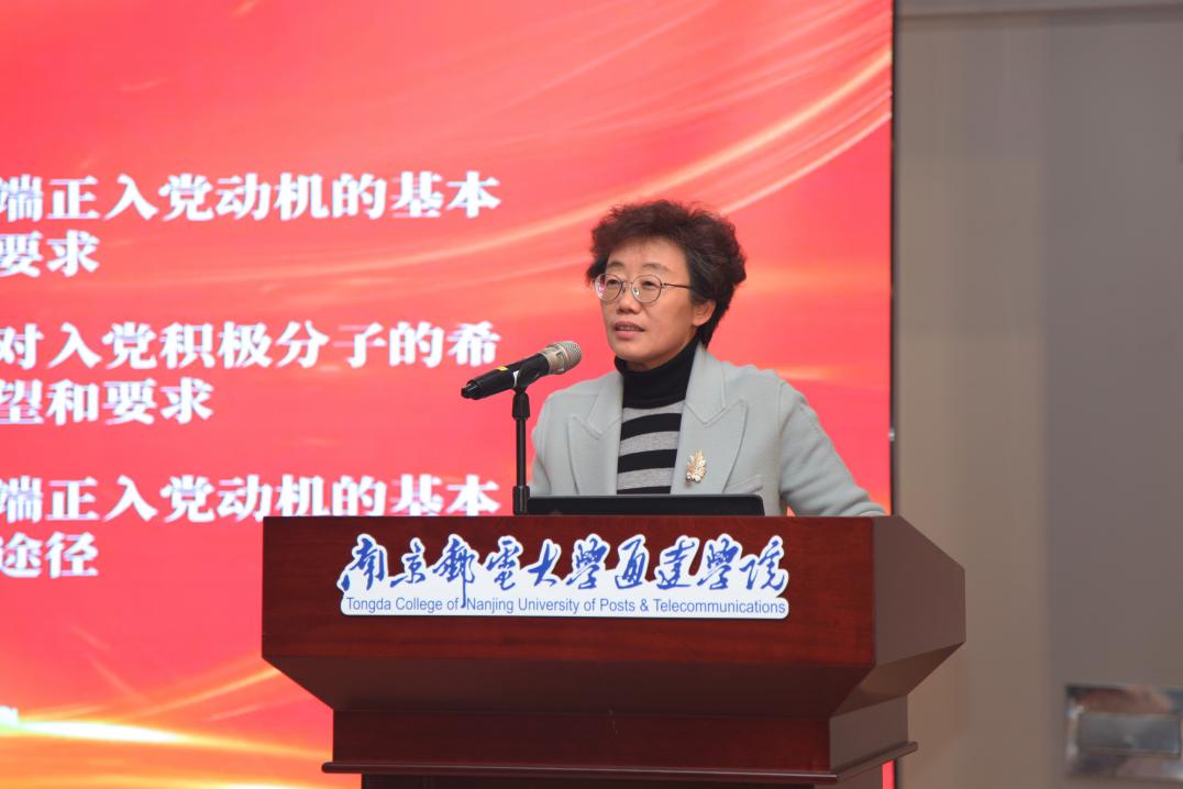 开班典礼结束后,朱清书记给培训班学员们讲授了以“增强理想信念 端正入党动机”为主题的专题党课。在党课的讲授过程中,朱书记从“什么是动机”着手,进而延展到“什么是入党动机”、“什么是正确的入党动机”、“端正入党动机的重要性”。接着结合实例,探讨了入党动机不正确的主要表现,围绕端正入党动机的基本要求,提出对入党积极分子的希望和要求。通过张桂梅和黄旭华的两段视频,以及2022年考研期间教职工冒着感染风险为学生送餐的感人事迹,带领学生感受榜样的力量,引导学生增强理想信念,端正入党动机。
