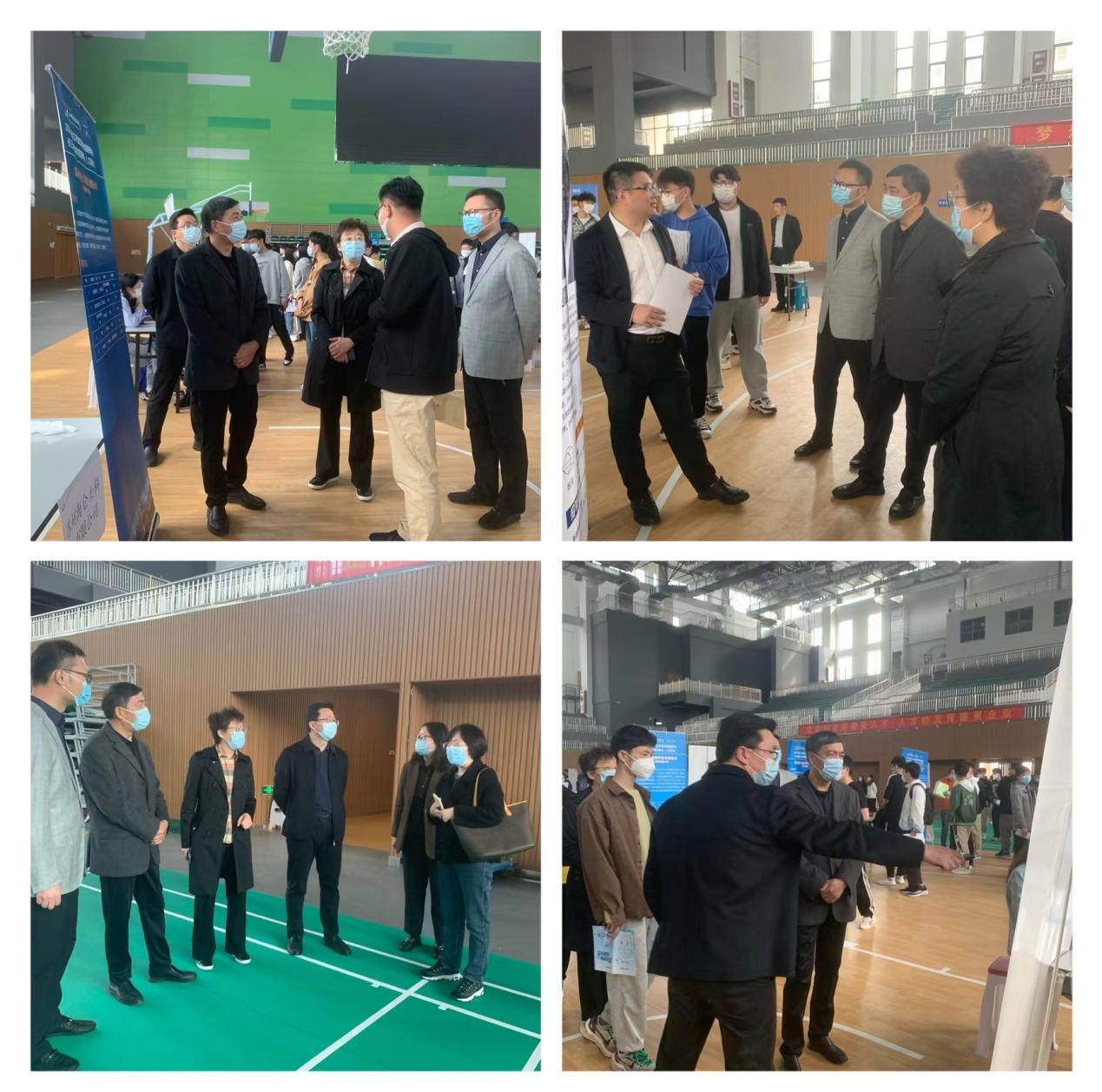 院长王国平、党委书记朱清、党委副书记兼副院长王楷来到招聘会现场,分别与吴江开发区人社部门负责人、企业HR以及二级学院总支副书记等进行沟通交流,了解当前就业情况与就业前景等。