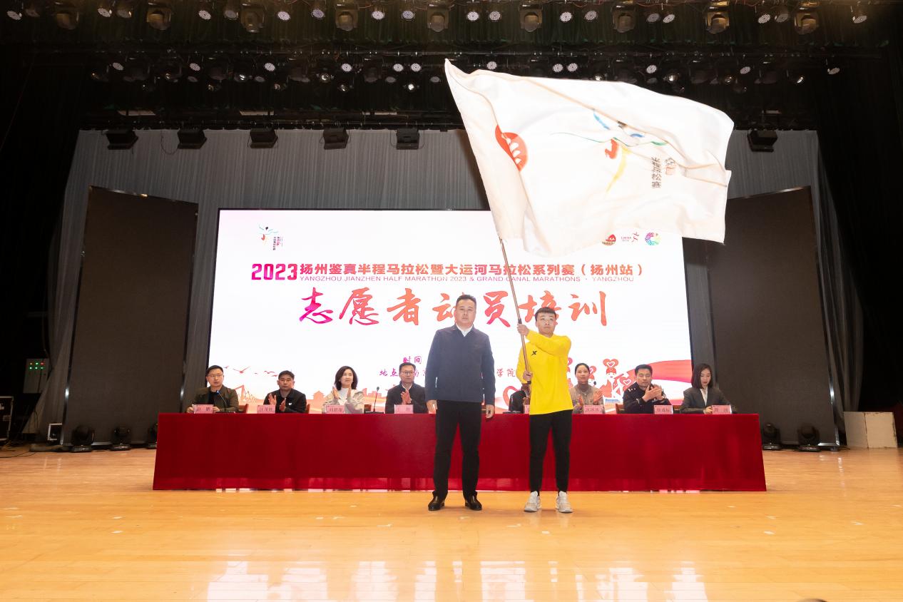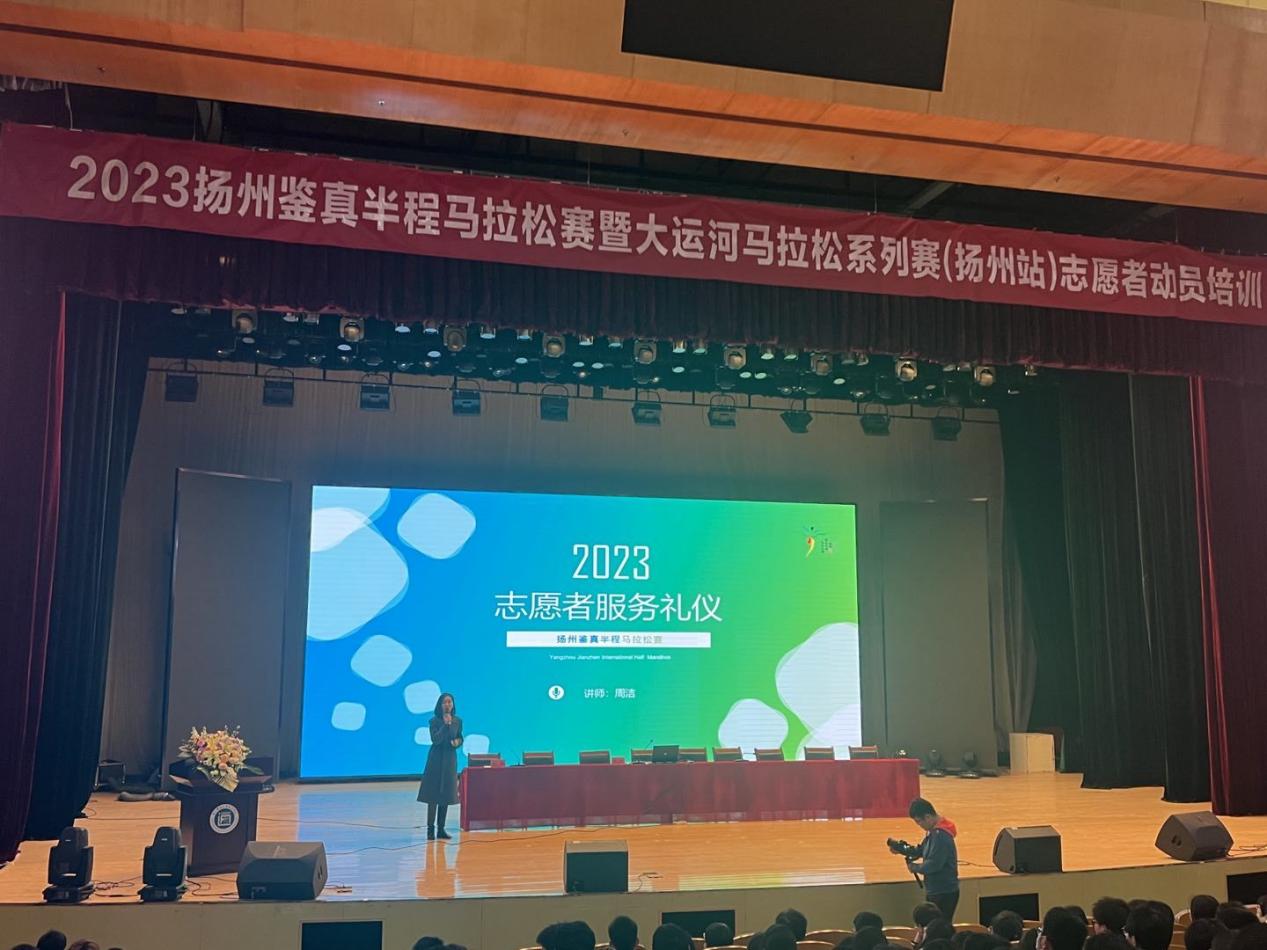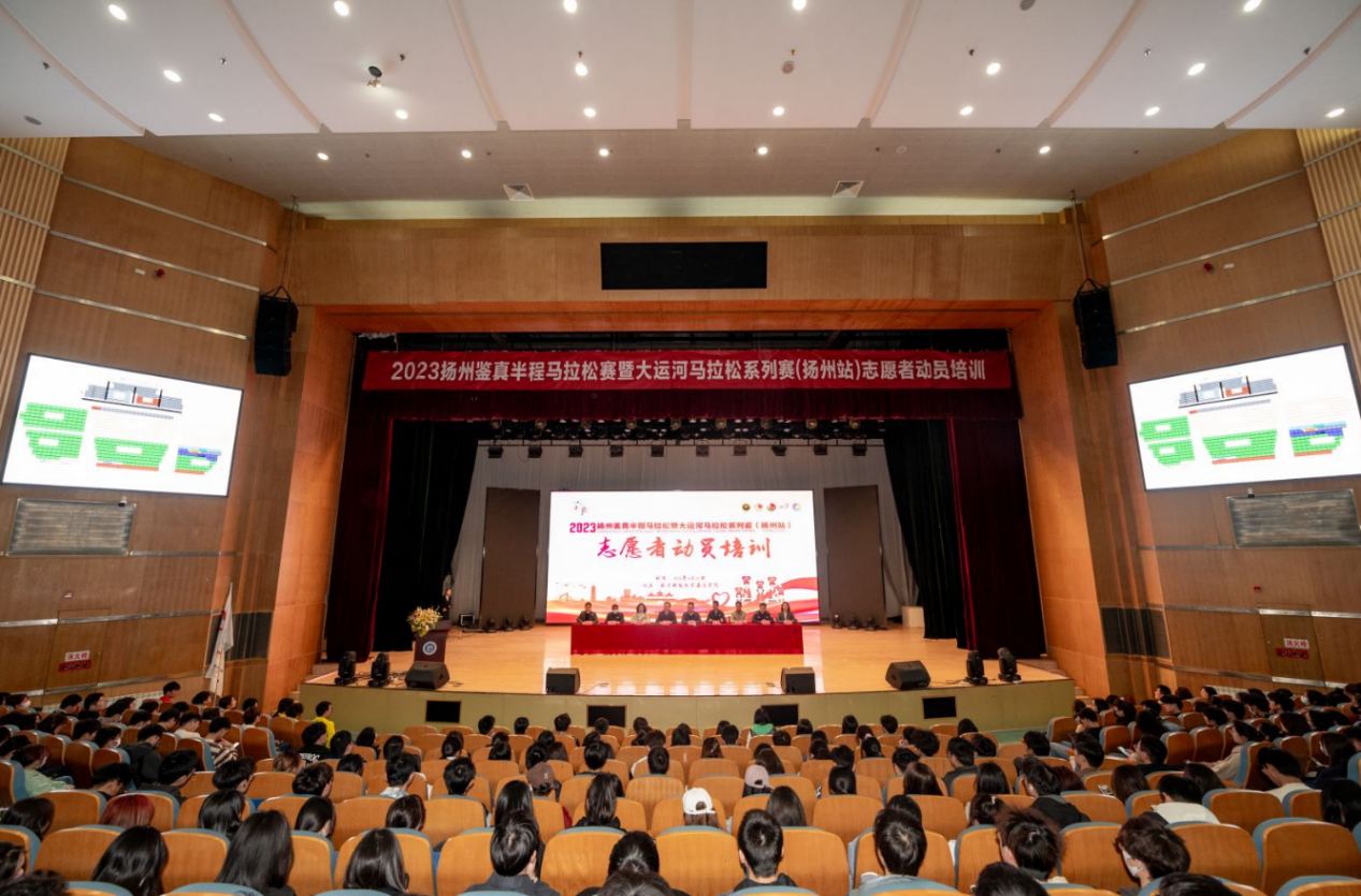 3月29日下午,2023扬州鉴真半程马拉松暨大运河马拉松系列赛(扬州站)第二场志愿者动员培训大会在威尼斯官网大礼堂顺利举行。扬州团市委副书记杨国庆,扬州市体育局四级调研员秦宏图,通达学院党委副书记兼副院长王楷,学院团委负责人参加动员大会。相关技能培训老师以及通达学院、扬州工业职业技术学院和江海学院的850余名志愿者参加动员培训。本次大会由团市委赵鹏主持。