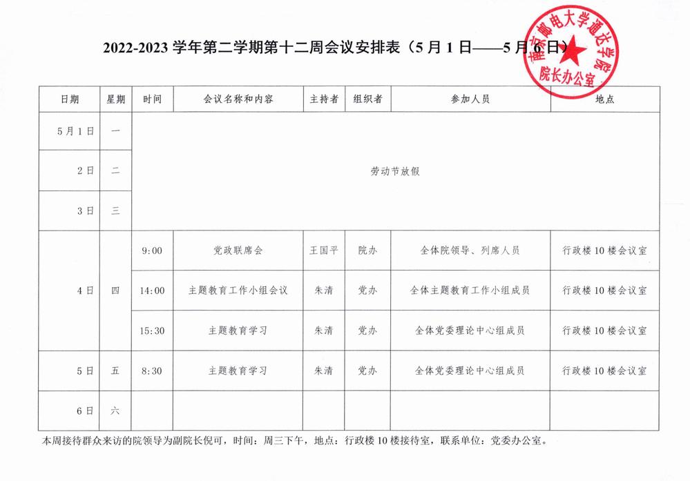 2022-2023学年第二学期第十二周会议安排表