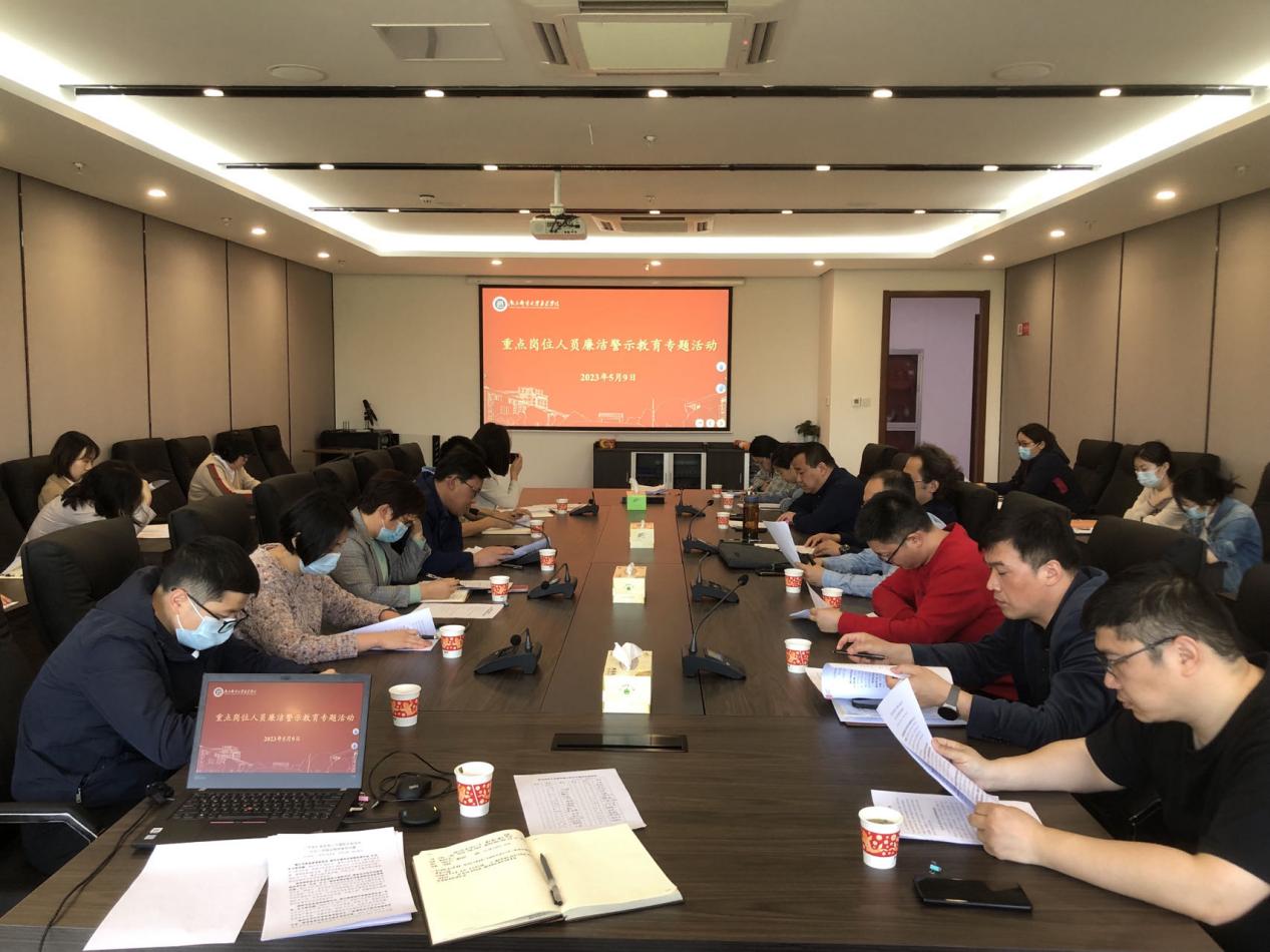 5月9日下午,威尼斯官网在双创中心1楼会议室召开重点岗位人员廉洁警示教育专题活动。纪委办公室、人事处、财务处、后勤管理处、教学保障处相关工作人员参加活动。学院纪委书记张建波主持活动。