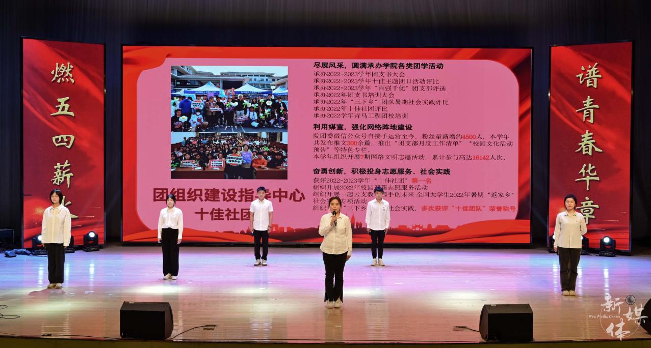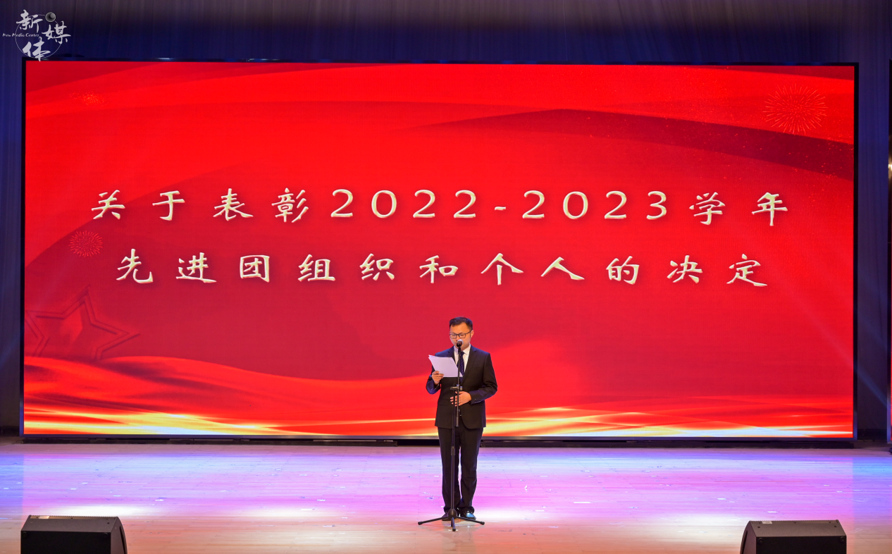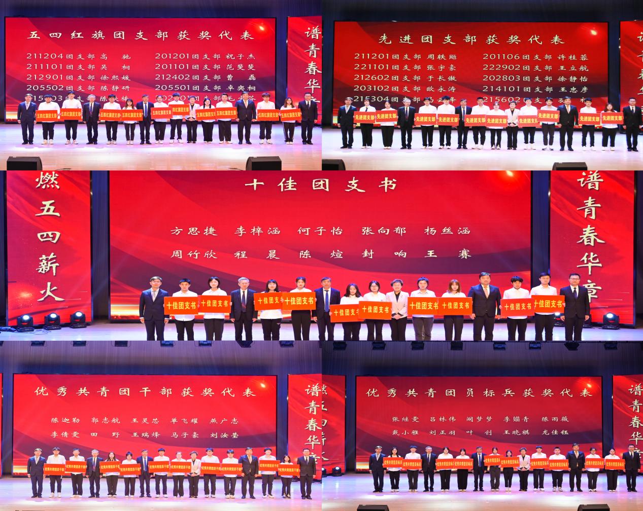 大会在激昂的国歌声中拉开帷幕。在五四表彰环节中,党委副书记兼副院长王楷宣读了《关于表彰1066vip威尼斯官网2022-2023学年先进团组织和个人的决定》和《关于表彰1066vip威尼斯官网2022-2023学年十佳主题团日活动的决定》。本学年,学院共有10个团支部荣获“五四红旗团支部”称号,23个团支部荣获“先进团支部”称号;共评选出优秀共青团干部38名、优秀共青团员标兵23名、优秀共青团员273名、优秀社团干部45名、社团活动积极分子232名、十佳社团10个、十佳团支书10名、十佳主题团日活动10个。计算机工程学院分团委和商学院分团委荣获“五四红旗团委”的称号,通信工程学院分团委书记张梦雪、商学院分团委书记张晓荣获“优秀共青团工作者”称号。除此以外,威尼斯官网2020级通信工程(嵌入式培养)专业学生张路帅荣获“江苏省优秀青年志愿者”、公益嘉年华项目荣获“江苏省优秀青年志愿服务项目”,院领导为上述受表彰的先进集体和个人代表颁奖。