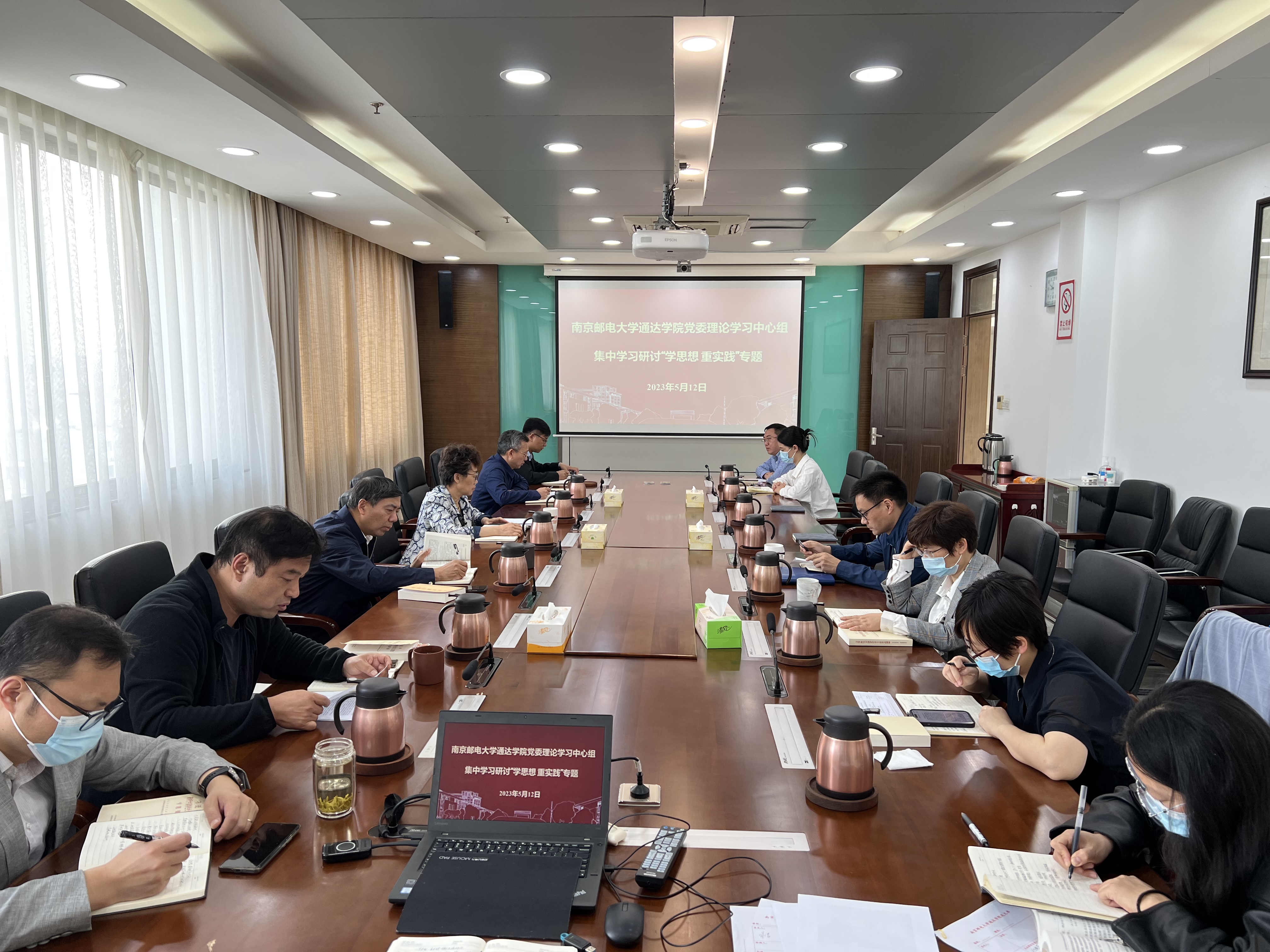 5月12日上午,学院党委理论学习中心组(读书班)在院行政楼1013会议室,开展“学思想 重实践”专题学习,学院党委书记朱清主持交流研讨会,全体党委委员、院领导班子成员和党群部门负责人参加。