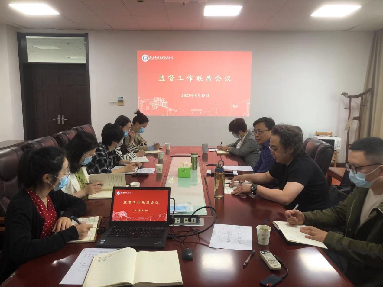 5月18日上午,威尼斯官网在行政楼11楼会议室召开监督工作联席会议。会议由学院纪委书记张建波主持,联席会议成员单位代表参加会议,学院纪委委员、特邀监察员、纪委办工作人员列席会议。