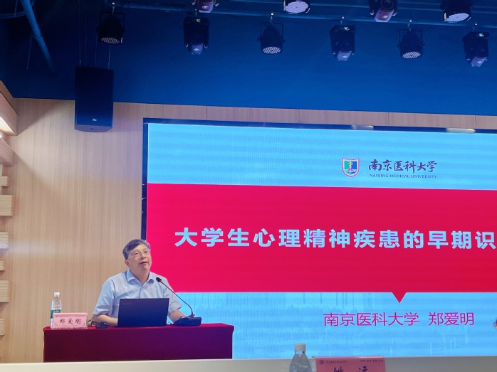 江苏省高校心理健康与研究中心(江宁基地)郑爱明教授引导辅导员们正确对待精神疾患,通过“三比三看”对学生异常的精神状态、存在的心理问题进行识别,并着重对“如何督促学生遵医服药”“如何加强医校、家校协作”做了详细的讲解。